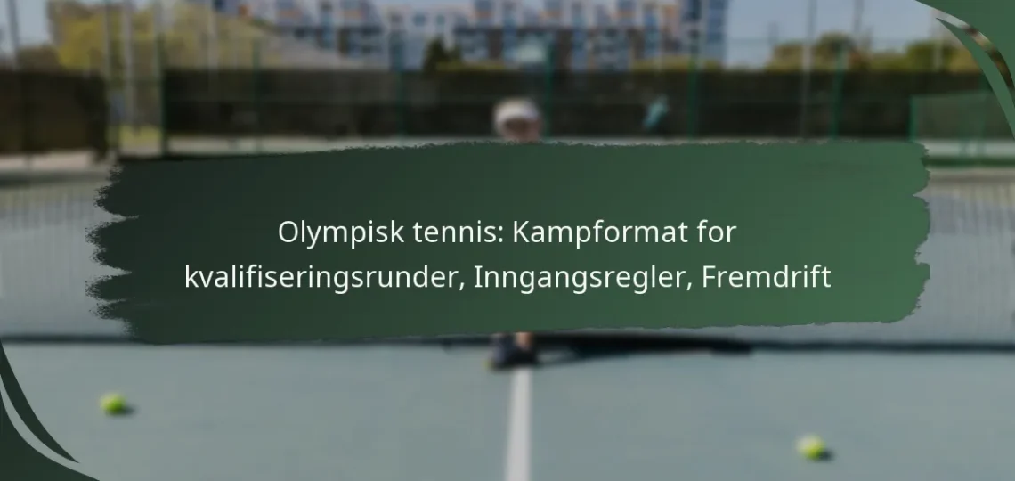 Olympisk tennis har et kampformat for kvalifiseringsrunder som bestemmer hvilke spillere som går videre til hovedarrangementet, med variasjoner basert på antall deltakere og ITF-regelverk. Inngangsregler krever at spillere oppfyller spesifikke kvalifikasjonskriterier, inkludert rangering og nasjonal representasjon, samtidig som de overholder søknadsfrister. Fremdriften gjennom turneringen følger…