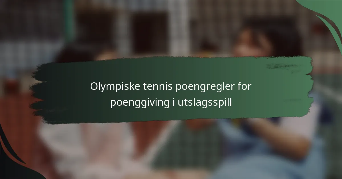 De olympiske tennisreglene for poenggiving i utslagsspill er utformet for å skape konkurransedyktige og spennende kamper, med et format der det spilles best av tre sett. Spillere må vinne seks spill for å ta et sett, med en tiebreaker implementert ved seks spill likt, noe som fremhever både ferdighet og utholdenhet. Denne unike strukturen, som skiller seg fra tradisjonelle turneringer, fremhever intensiteten i utslagsspill, noe som gjør det avgjørende for spillere og fans å forstå poenggivningsdynamikken som er involvert.