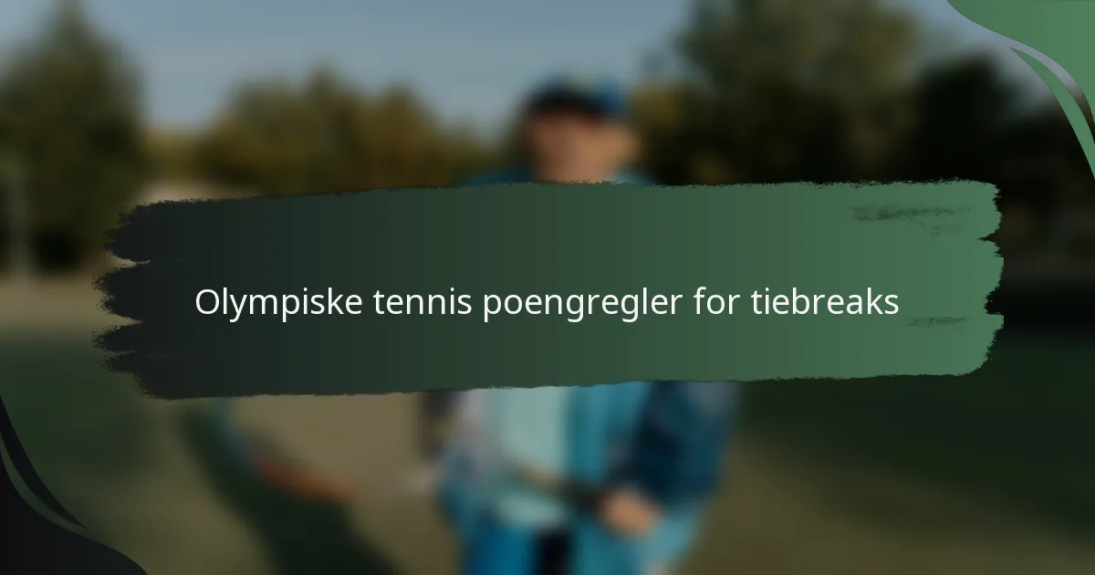 I olympisk tennis er tiebreaks avgjørende for å bestemme vinneren av et sett når poengsummen når et spesifikt nivå, og sikrer en rettferdig avslutning på jevnt spilte kamper. Disse tiebreak-reglene skiller seg fra de i Grand Slam- og ATP/WTA-turneringer, noe som påvirker spillernes strategier og kampresultater. Å forstå den unike strukturen og poengsystemet for olympiske tiebreaks er essensielt for idrettsutøvere som ønsker å utmerke seg i disse høytrykksituasjonene.